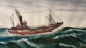 This watercolor painting of the Oregon II measures 15x22 and is matted to a 20x28 mat.